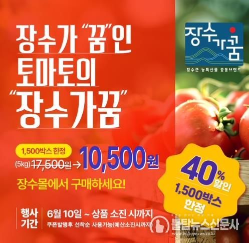 불탑뉴스신문사 송행임 기자 | 장수군이 운영하는 직영 농특산물 쇼핑몰 ‘장수몰’에서 군 농특산물 공동브랜드 ‘장수가꿈’의 인지도 확산을 위해 10일부터 고품질 장수 토마토를 40% 할인한 가격에 판매하는 특별 이벤트를 진행한다.