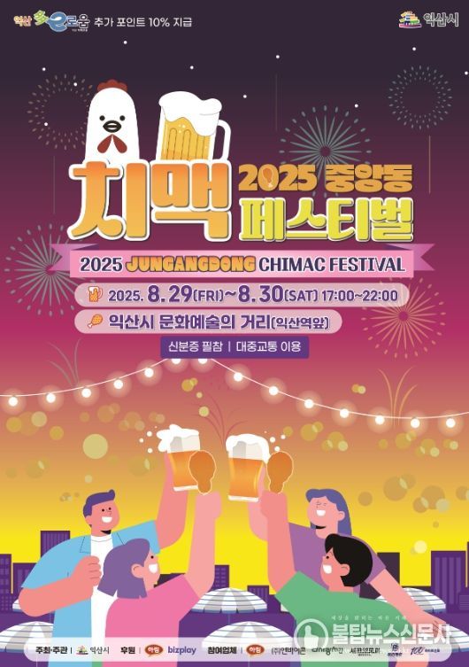 27일 익산시에 따르면 오는 29~30일 '2025 중앙동 치맥 페스티벌'이 개최되고, 30~31일은 '치킨·락 페스티벌'이 열려 도심 전체가 여름밤 축제의 장으로 변신한다.