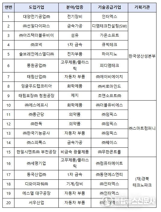 작년 선정기업 중 우수사례를 발표한 ㈜코아비스는 온도와 외부먼지 등에 취약한 자동차부품 생산라인에 무인 환경을 구축하고 가상현실에서 인공지능 기술을 활용해 최적의 공정관리·제어를 구현했다. 그 결과 생산성이 56% 향상됐고 공정설비 트러블도 20% 감소했다.