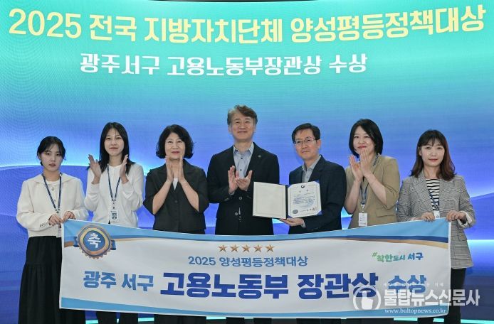 불탑뉴스신문사 차복원 기자 | 광주광역시 서구는 ‘2025 양성평등정책대상’ 지방자치단체 부문에서 고용노동부 장관상을 수상했다.