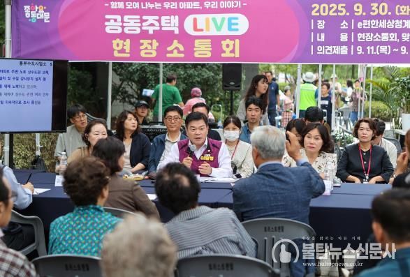 불탑뉴스신문사 차복원 기자 | 서울 동대문구는 지난 30일 e편한세상 청계센트럴포레 아파트에서 ‘2025 공동주택 LIVE 현장소통회’를 개최했다. 지난 6월 래미안미드카운티에서 열린 첫 소통회에 이어 두 번째로 마련된 이번 행사는 구청장이 직접 현장을 찾아 입주민과 소통하며 공동주택 현안을 논의하는 자리로 진행됐다.