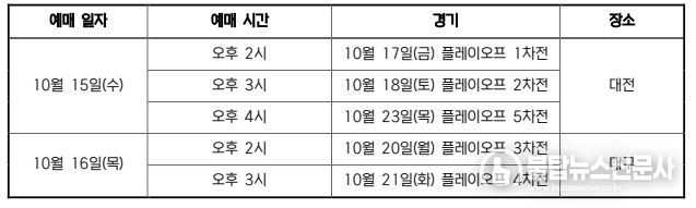 불탑뉴스신문사 한기석 기자 | KBO는 10월 17일(금)부터 열리는 삼성 라이온즈와 한화 이글스의 2025 신한 SOL뱅크 KBO 플레이오프 입장권 예매를 10월 15일(수) 오후 2시부터 진행한다.