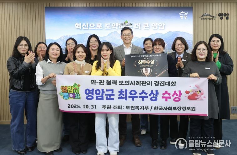 영암군이 10/31일 보건복지부 주최, 한국사회보장정보원 주관으로 대전에서 열린 ‘2025년 민관 협력 모의 사례관리 경진대회’에서 최우수상을 수상했다.
