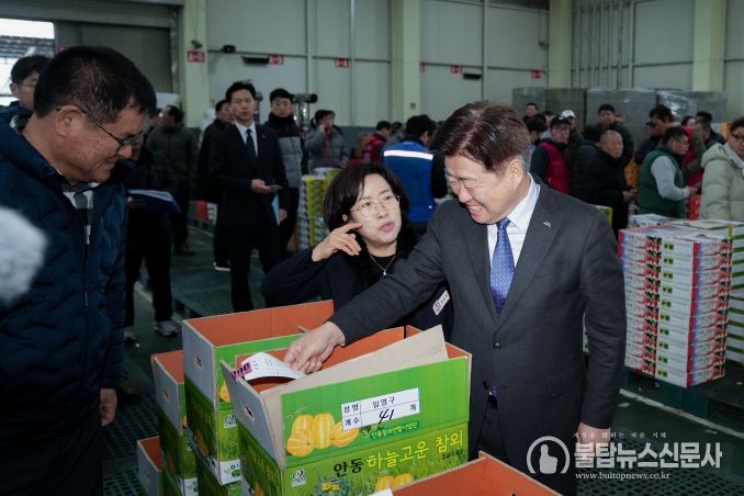 불탑뉴스신문사 송행임 기자 | 제주특별자치도는 제주산 만감류의 본격적인 출하 시기를 맞아 15일 오전 8시 경북 안동시 농수산물도매시장 경매현장을 방문해 제주산 만감류 유통 및 도매시장 운영 상황을 살피고, 유통관계자들과 현장 간담회를 진행했다.