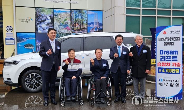 우광일 광양상공회의소 회장은 “척수장애인협회의 노후된 승합차 교체에 어려움이 있다는 소식을 접하고, 장애인들의 편의와 이동에 도움이 되기를 바라며 앞으로도 다양한 지역사회 사랑 실천에 앞장서겠다”고 전했다.