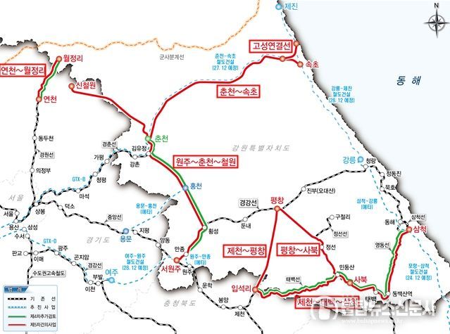 강원지역 동서 남북간 양방향 직결노선이 구축