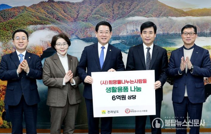 불탑뉴스신문사 한민석 기자 | 전라남도는 5일 (사)희망을 나누는 사람들로부터 취약계층 지원을 위한 6억 원 상당의 생활용품을 기탁받았다.