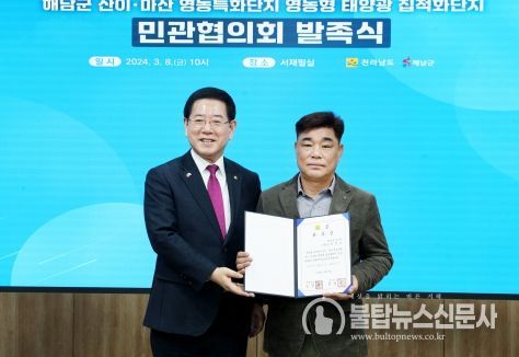 민관협의회는 27개 인접 마을 전체 주민의 사업 추진 동의를 받고, 민간 공동위원장을 포함해 총 29명으로 구성됐다. 전남도와 해남군 소속 공무원 5명, 주민대표와 특화단지협의체 16명, 전문가 8명이 참여했다.