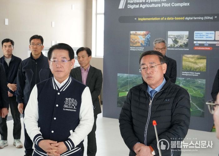 불탑뉴스신문사 한민석 기자 | 김영록 전라남도지사는 22일 나주에 조성 중인 한국형 노지 스마트농업 시범단지 현장을 방문해 추진상황 등을 점검하고 노지 스마트농업과 관련된 기술 시연을 참관했다.