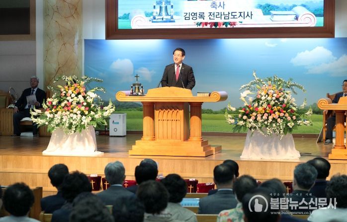 김영록 지사는 축사를 통해 부활절을 축하하고, 목포기독교교회연합회의 지역사회 봉사와 전국소년(장애인)체전 성공 염원 등 전남 발전을 위한 기도에 감사를 표했다.