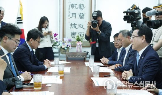 불탑뉴스신문사 한민석 기자 | 김영록 전라남도지사는 10일 국회를 방문해 민주당 박찬대 원내대표와 진성준 정책위 의장을 만나 지역 현안을 건의하고 국회 차원의 지원을 요청했다.