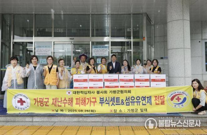 불탑뉴스신문사 차복원 기자 | 대한적십자사 가평군협의회는 최근 집중호우로 피해를 입은 가평군 내 수해 가구를 위해 2천만 원 상당의 부식 세트와 섬유유연제를 기탁했다.
