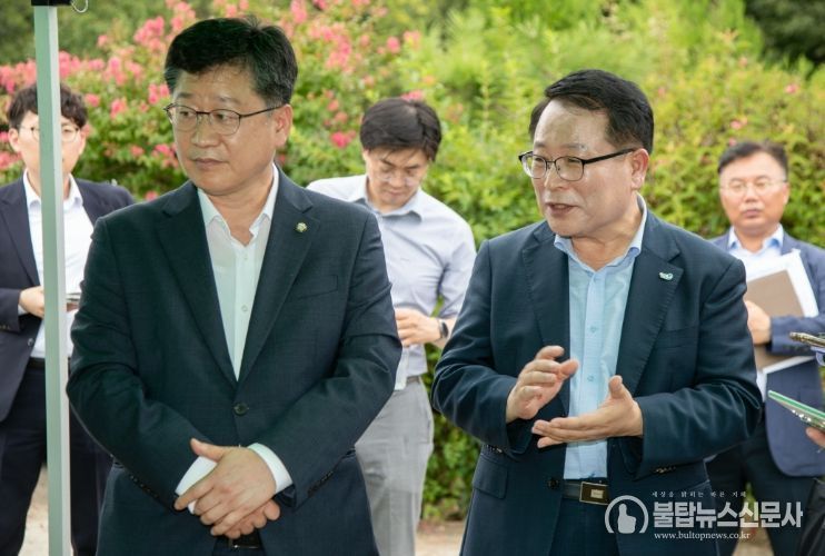 정헌율 익산시장은 2일 안호영 국회 환경노동위원장(더불어민주당, 완주·진안·무주)과 함께 '왕궁 자연환경복원사업' 현장을 둘러봤다.