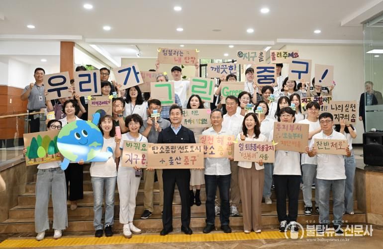 이날 김영길 중구청장과 중구청 전 직원은 탄소중립 실천 서약에 동참했다.