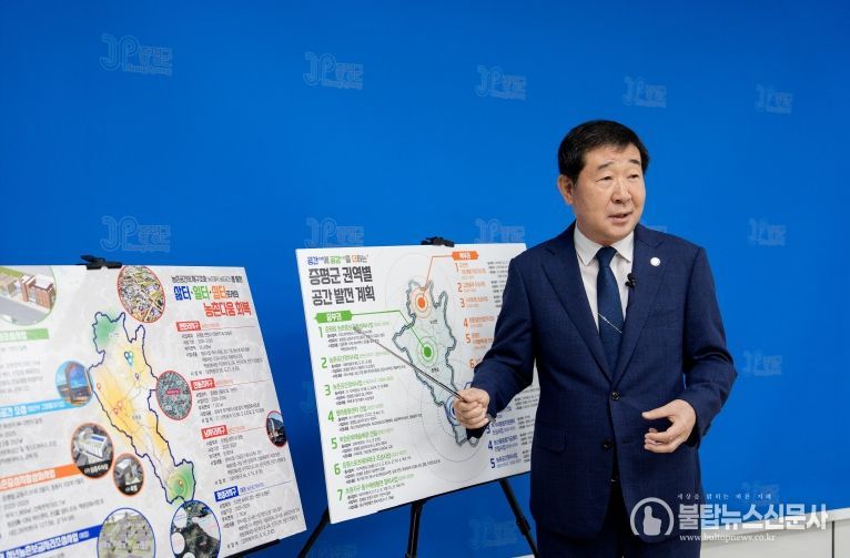 이재영 군수는 4일 군청 브리핑실에서 기자회견을 열고 “권역별 맞춤형 재구조화와 핵심 거점 조성을 통해 주거·문화·산업·돌봄이 어우러진 증평형 농촌모델을 완성하겠다”고 밝혔다.