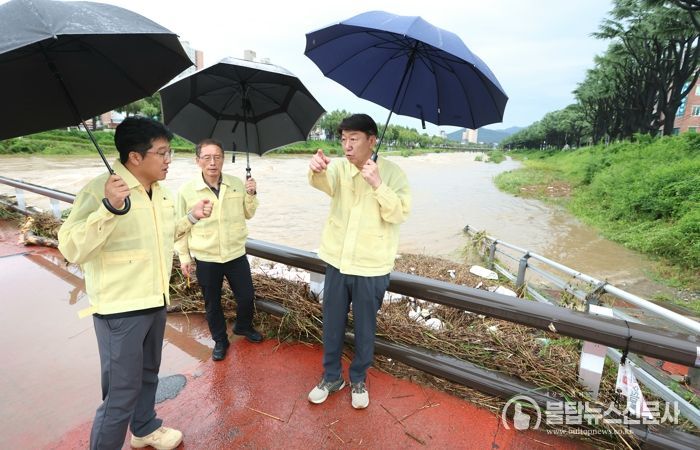 또 우 시장은 현재 통제 중인 남부시장 둔치주차장과 전주천 범람 우려로 침수 피해가 발생할 수 있는 어은쌍다리 인근 등을 잇단 찾으며 현재 상황을 파악하고, 대응 실태를 확인했다.