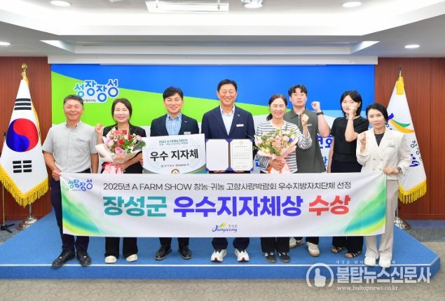불탑뉴스신문사 차복원 기자 | 장성군이 지난 8월 29~31일 서울 ‘에이티(aT)센터’에서 열린 ‘2025년 에이팜쇼(A FARM SHOW) 창농·귀농 고향사랑박람회’에서 ‘우수지자체상’을 수상했다.