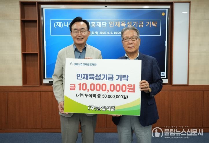 윤병태 나주시장은 “㈜광일식품의 꾸준한 나눔은 나주 교육의 든든한 힘이 되고 있다”며 “기부문화 확산과 함께 학생들이 미래를 설계할 수 있는 명품 교육도시를 만들어가겠다”고 밝혔다.