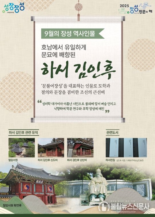 불탑뉴스신문사 차복원 기자 | 장성군이 9월의 역사 인물로 하서 김인후(1510~1560) 선생을 선정했다.