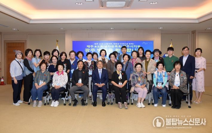 불탑뉴스신문사 차복원 기자 | 강기정 광주광역시장이 9일 시청 비즈니스룸에서 제주4·3희생자유족회와 환담하고, 역사적 아픔을 넘어 평화와 인권의 가치를 함께 지켜나갈 것을 다짐했다.