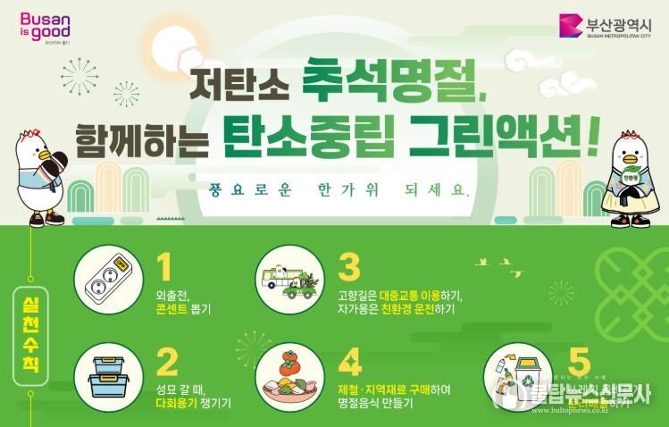 또한 영도구는 명절 연휴 동안 늘어나는 교통량과 일회용품 사용으로 인해 탄소 배출이 급격히 증가하는 점을 고려해, 구민들이 쉽게 동참할 수 있는 저탄소 생활 5대 실천수칙을 제안했다.