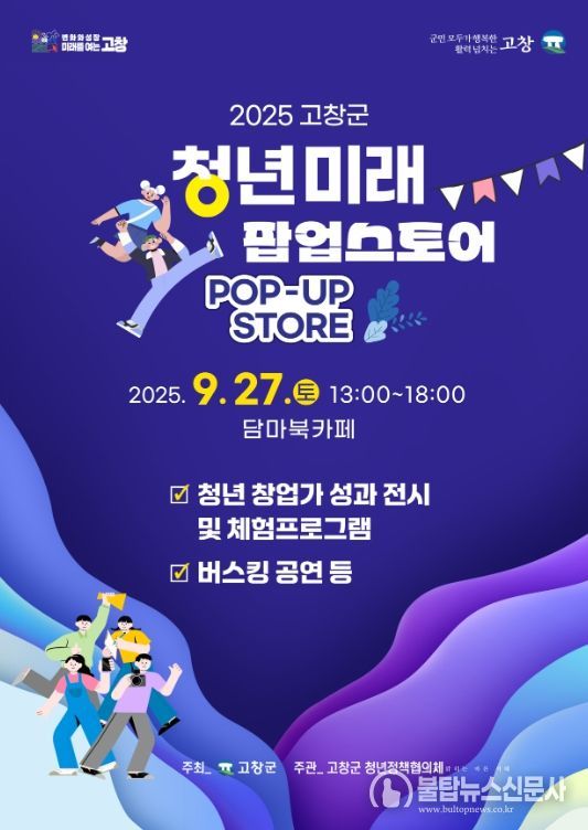 불탑뉴스신문사 차복원 기자 | 고창군은 오는 9월27일 오후 1시부터 담마북카페에서 2025 청년의 날 기념행사 ‘청년미래 팝업스토어’를 연다.