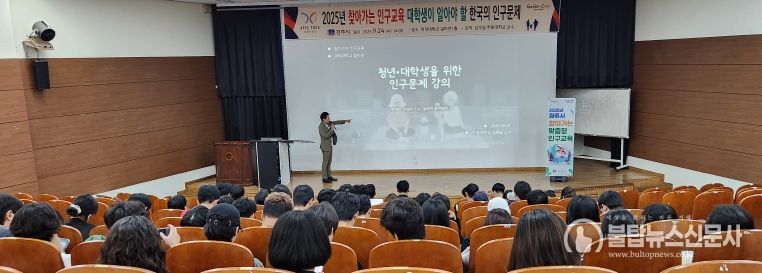 불탑뉴스신문사 차복원 기자 | 경주시는 지난 24일 위덕대학교 갈마관 대강당에서 재학생 100여 명을 대상으로 ‘찾아가는 맞춤형 인구교육’을 진행했다.