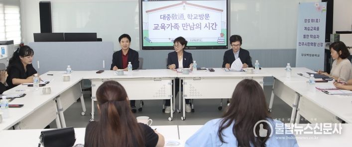불탑뉴스신문사 차복원 기자 | 전라남도교육청은 26일 ‘대중교통, 학교방문’으로 장성백암중학교를 방문해 ‘전남 의(義) 교육’을 주제로 교육가족과 차담회를 열고, 학교 현장의 목소리를 들었다.
