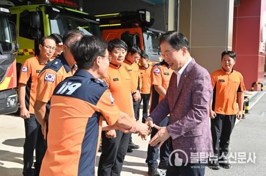 이번 방문에는 지역구 도의원과 지역 교육장이 함께해 뜻을 더했으며, 특히 소방서 5곳에는 국가보훈부 성금으로 위문금이 지원돼 지난 3월 산불 진화에 헌신한 소방관들의 노고를 위로하고 감사의 뜻을 전했다.
