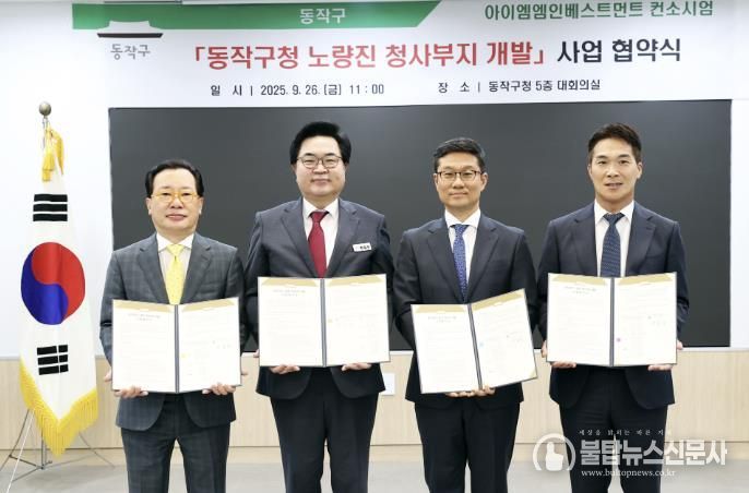 구는 지난 26일, IMM인베스트먼트 및 시몬느자산운용 등(이하 IMM 인베스트먼트 컨소시엄)과 동작구청 노량진 청사부지 매각에 관한 협약을 체결했다며 이같이 밝혔다.