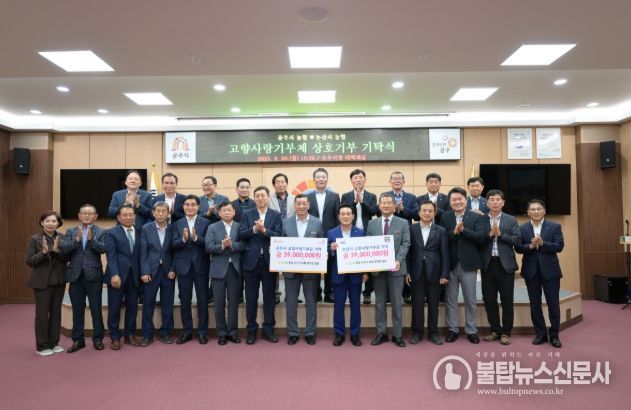 불탑뉴스신문사 차복원 기자 | 논산시는 29일 공주시청 대백제실에서 공주시 및 양 시 농협 관계자들과 함께 ‘고향사랑기부금 상호 기탁식’을 개최했다고 밝혔다.