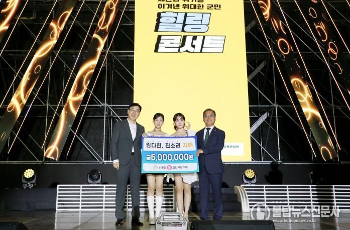 불탑뉴스신문사 송행임 기자 | 지난 29일, 하동공설운동장에서 개최된 힐링콘서트에서 가수 김다현과 진소리(본명 김도현) 자매가 산불과 수해로 상처 입은 군민을 위로하며 고향사랑기부금 5백만 원을 전달했다.