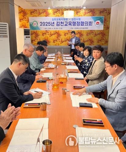 불탑뉴스신문사 차복원 기자 | 경상북도김천교육지원청과 김천시청은 30일 오전 12시 김천교육 발전 방안을 모색하고 지역 교육 현안에 대한 공동 해결을 위한 2025년 김천교육행정협의회 정기회를 개최했다.