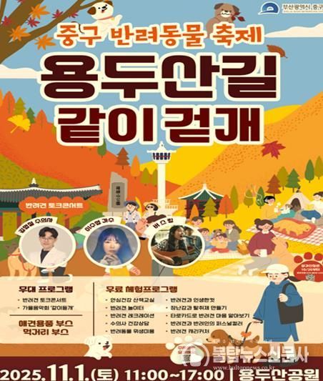 불탑뉴스신문사 송행임 기자 | 부산 중구는 오는 11월 1일 용두산공원 일원에서 첫 반려동물 축제, ‘용두산길 같이걷개’를 개최한다.
