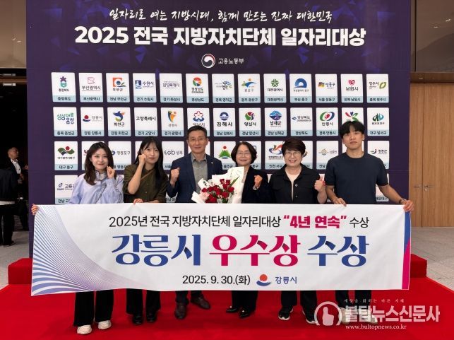 불탑뉴스신문사 차복원 기자 | 강릉시는 9월 30일 고용노동부가 주관하는 “2025년 전국지방자치단체 일자리대상”시상식에서 4년 연속 수상하는 영예를 안았다.