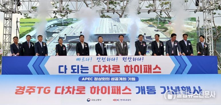 불탑뉴스신문사 차복원 기자 | 2025년 APEC 정상회의 성공개최를 기원하는 의미를 담아 한국도로공사는 경부고속도로 경주요금소 다차로 하이패스 개통식을 개최했다.
