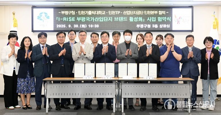 불탑뉴스신문사 차복원 기자 | 부평구는 지난 30일 구청 상황실에서 인천가톨릭대학교 ·인천테크노파크·한국산업단지공단과 함께 ‘I-RISE 부평국가산업단지 브랜드 활성화 사업’ 협약을 체결했다.