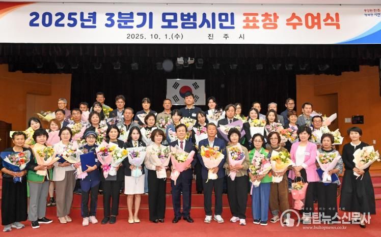 불탑뉴스신문사 송행임 기자 | 진주시는 1일 지역사회 발전과 봉사활동을 몸소 실천하며 귀감이 된 모범시민 81명을 대상으로 ‘2025년 3분기 모범시민 표창 수여식’을 개최했다.