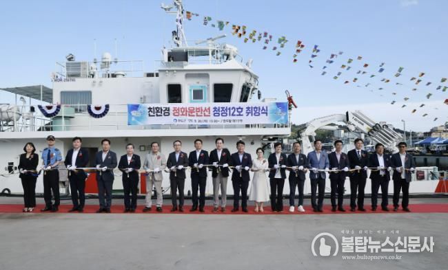 불탑뉴스신문사 차복원 기자 | 완도군은 지난 9월 30일 해양쓰레기 수거, 적조 및 해양 오염 방제 등 해양 환경 보전을 위한 다목적 친환경 정화 운반선 ‘청정 12호’ 취항식을 가졌다.