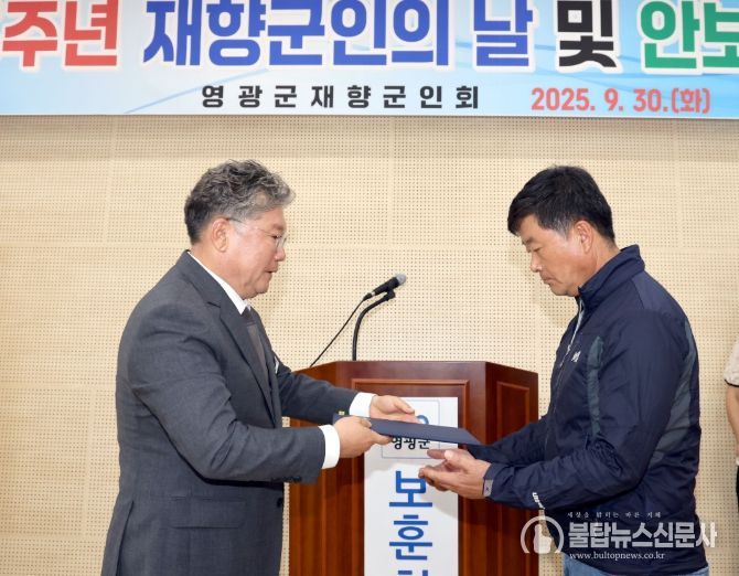 영광군수는 축사에서 “조국의 자유와 평화를 지키기 위해 헌신하신 재향군인 여러분께 깊은 감사와 존경을 드린다”라며, “여러분의 숭고한 희생이 오늘의 대한민국을 만들었고, 우리 영광군의 든든한 안보 기반이 됐다”라고 밝혔다.