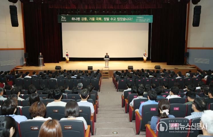 불탑뉴스신문사 차복원 기자 | 강릉시는 10월 1일 오전 9시, 시청 2층 대강당에서 가뭄 극복 후 처음으로 전 직원이 한자리에 모이는 10월 월례조회를 개최하여 직원 간 소통과 화합의 시간을 가졌다.