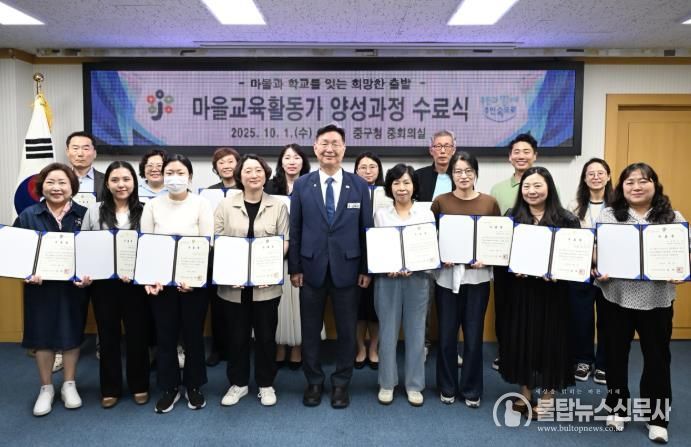 불탑뉴스신문사 차복원 기자 | 대전 중구는 1일 중구청 중회의실에서 행복이음교육지구 사업으로 추진한 ‘2025년 중구 마을교육활동가 양성과정’을 마무리하고 수료식을 개최했다고 밝혔다.