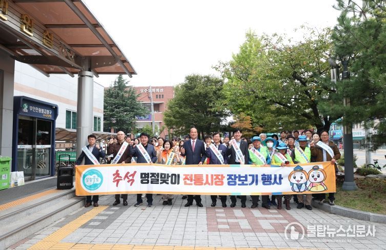 불탑뉴스신문사 차복원 기자 | 상주시는 추석 명절을 앞두고 경기침체로 어려움을 겪고 있는 전통시장 상인들의 사기 진작과 내수경기 활성화를 위해 10월 2일에 전통시장 장보기 행사를 진행했다.