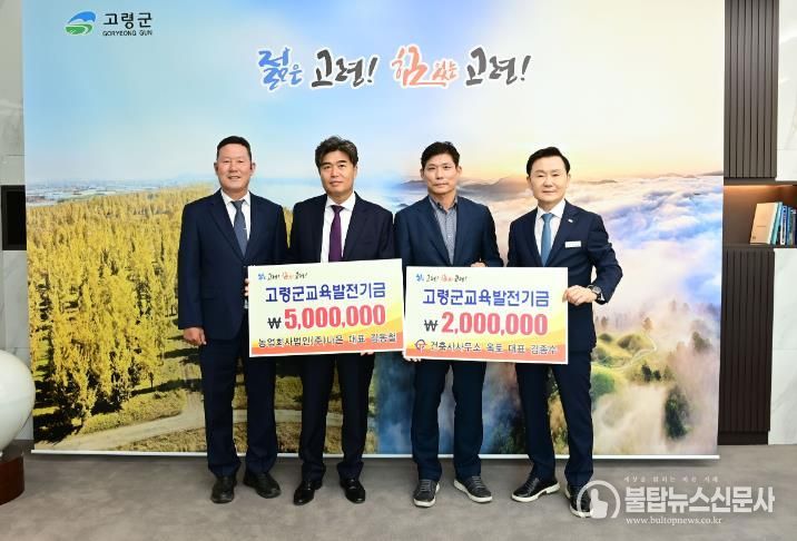 이날 농업회사법인(주)나은 김동철 대표는 “급변하는 교육 환경 속에서 우리의 미래인 아이들을 위해 수고해 주시는 고령군에 감사드린다.”며 “앞으로도 고령 교육 발전에 도움이 될 수 있는 기업의 사회적 역할을 지속적으로 하겠다.”고 말했으며, 건축사사무소 옥토 김종수 대표는 “지역의 우수한 인재를 키우는 밑거름이 되길 바라는 마음에서 기탁하게 됐다며 앞으로도 지역 발전과 인재 양성을 위해 힘을 보탤 수 있도록 노력하겠다.”고 말했다.