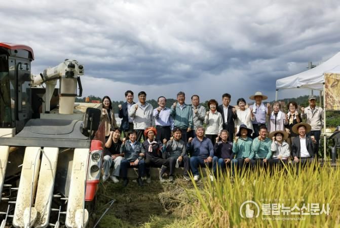 불탑뉴스신문사 차복원 기자 | 연천군은 10월 2일 연천군농업인단체협회가 주관하여 청산면 장탄리에서 벼베기 행사를 개최했다.
