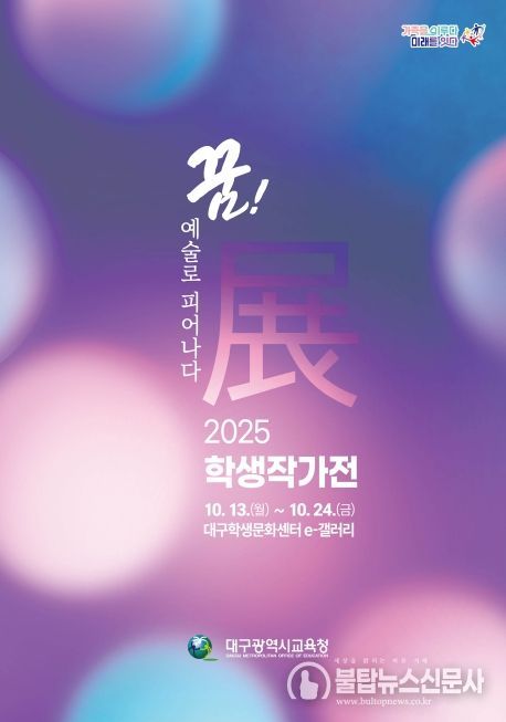 불탑뉴스신문사 차복원 기자 | 대구시교육청은 10월 13일 부터 10월 24일까지 대구학생문화센터 e-갤러리에서 학생들의 꿈과 예술적 재능을 꽃피우는 특별한 전시, 2025 대구학생작가전 ‘꿈! 예술로 피어나다展’을 개최한다.