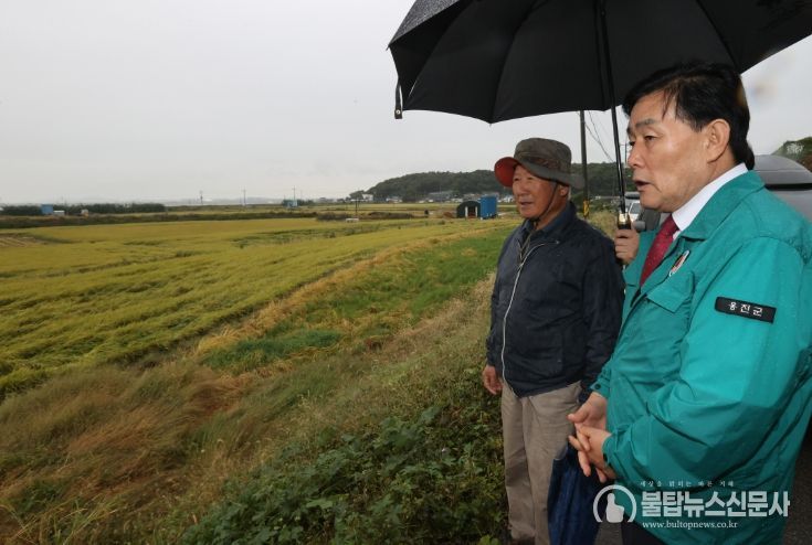 불탑뉴스신문사 차복원 기자 | 옹진군수는 지난 6일에 내린 집중호우와 강풍으로 인해 벼 도복 피해를 입은 북도·영흥면을 방문하여 피해 상황을 점검했다.