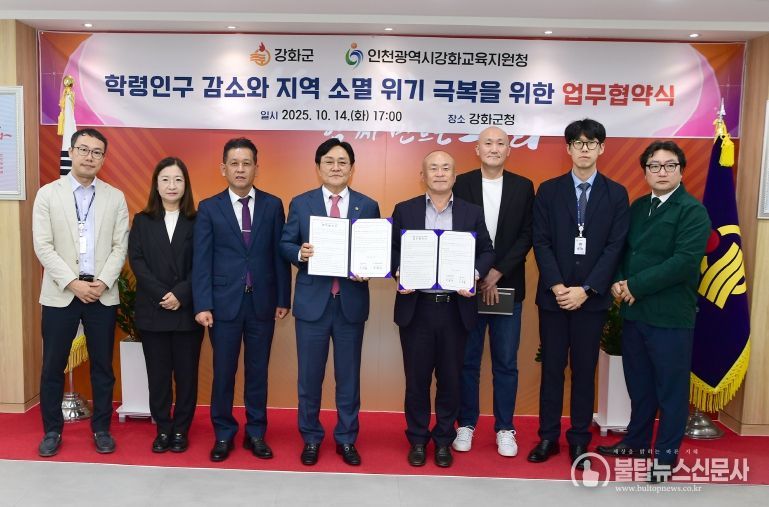 불탑뉴스신문사 차복원 기자 | 강화군은 지난 14일, 강화교육지원청과 ‘학령인구 감소 및 지역 소멸 위기 극복을 위한 업무협약’을 체결했다.