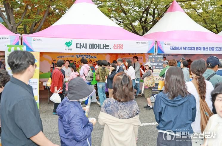 경남도청 앞 광장에서 지난 14일 열린 이번 행사에서 산청군은 고향사랑기부제와 농특산물 및 관광자원 홍보에 나섰다.