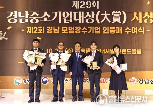 불탑뉴스신문사 송행임 기자 | 경상남도는 22일 오후 호텔 인터내셔널 창원에서 ‘제29회 경남중소기업대상 시상식’ 및 ‘제2회 경남 모범장수기업 인증패 수여식’을 개최했다.